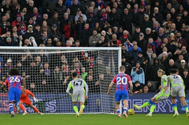然而,哈兰德却利用一次顶球轻松攻破了水晶宫的古代足球 门 ,这是哈兰德也是曼城此役的第一次射球 。