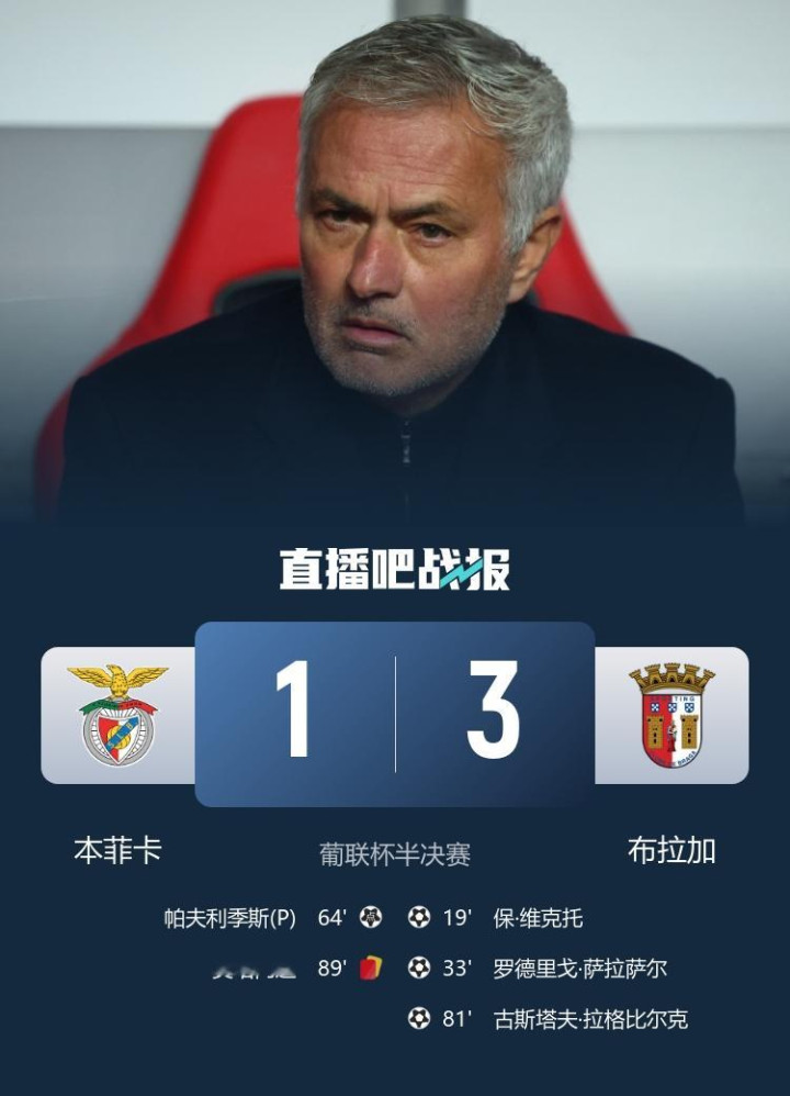 无缘葡联杯总决赛 !本菲卡1-3布拉加萨拉萨尔一条龙奥塔门迪染红
