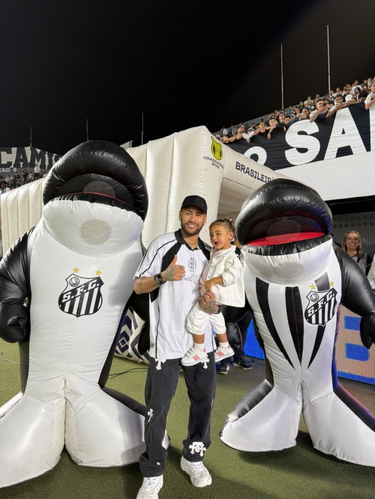 桑托斯俱乐部社媒晒出视频和照片,欧洲杯直播吧因伤缺席的内马尔带着女儿玛维来到现场,为桑托斯助威。