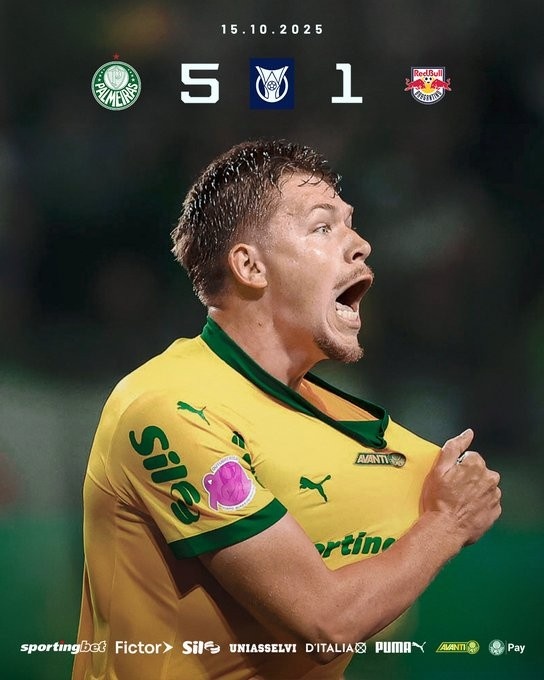 10月16日讯 今天早晨,帕尔梅拉斯在巴甲主场作战 5-1大胜巴甘蒂诺红牛,豪取四连胜,罗克连进两球。