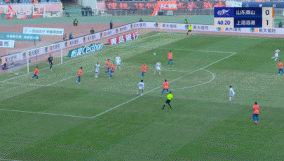10月26日讯 中超职业联赛 第28轮,上半场山东泰山1-1战平上海海港。赛事 第41分钟,泽卡反击中冲破 送出斜传,卡扎伊什维利跟进杀入危险区域 低射扳平比分。