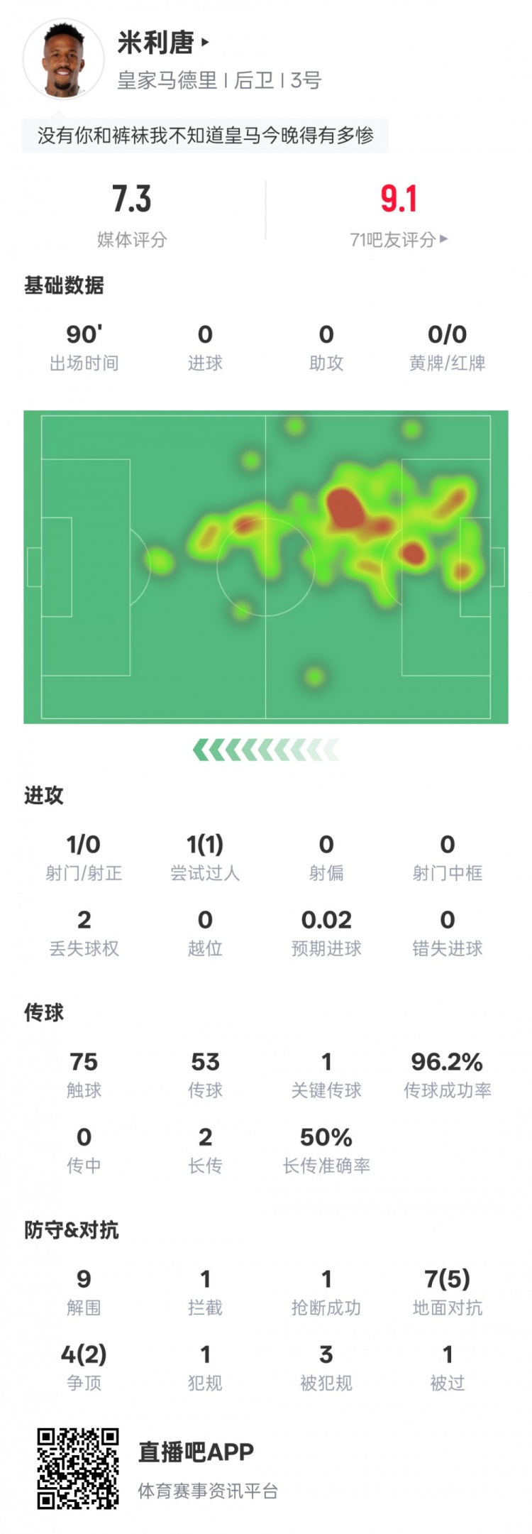 米利唐本场赛事 数据如下:
